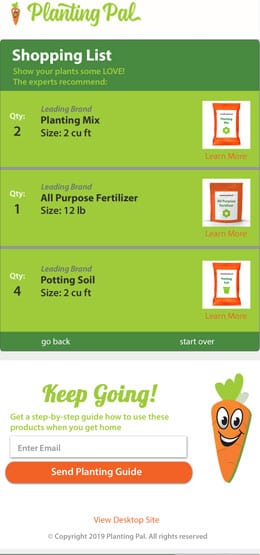 Yes. You will have the option to email yourself a planting guide that has been crafted by the experts at your garden center. The planting advice is unique to each garden center – making certain that the planting advice is tailored for your area and planting conditions. Each planting guide will provide you with easy step-by-step instructions for the entire planting process using the recommended amendments on your shopping list.